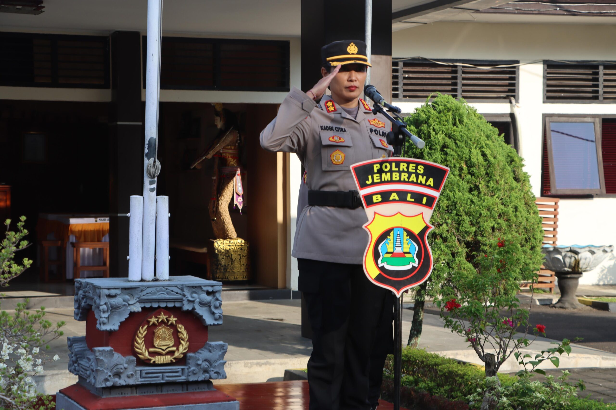 Polres Jembrana,- Kapolres Jembrana AKBP Kadek Citra Dewi Suparwati S.H., S.I.K., M.I.K. pimpin langsung pelaksanan apel jam pimpinan yang bertempat di Lapangan Apel Polres Jembrana, Senin (14/4) pagi. Apel tersebut juga dihadiri para Pejabat Utama (PJU), Kapolsek jajaran, perwira, brigadir, serta ASN Polri.