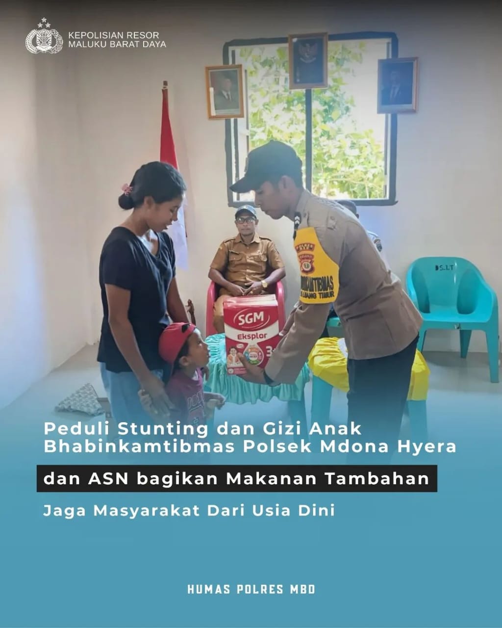 Sementara itu, Kapolres Maluku Barat Daya, AKBP Budhi Suriawardhana, S.I.K, memberikan apresiasi atas keterlibatan aktif jajaran Polsek Mdona Hyera dan Bhabinkamtibmas dalam mendukung program nasional penurunan stunting.