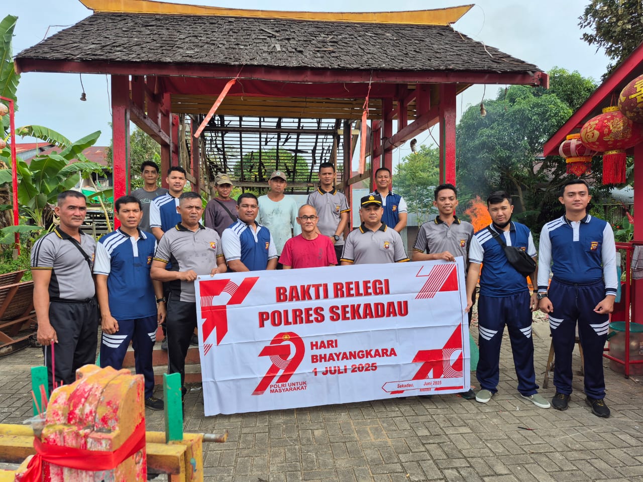 Bhakti Religi Hari Bhayangkara ke-79, Polres Sekadau Bersihkan Klenteng Fuk Tet Chi