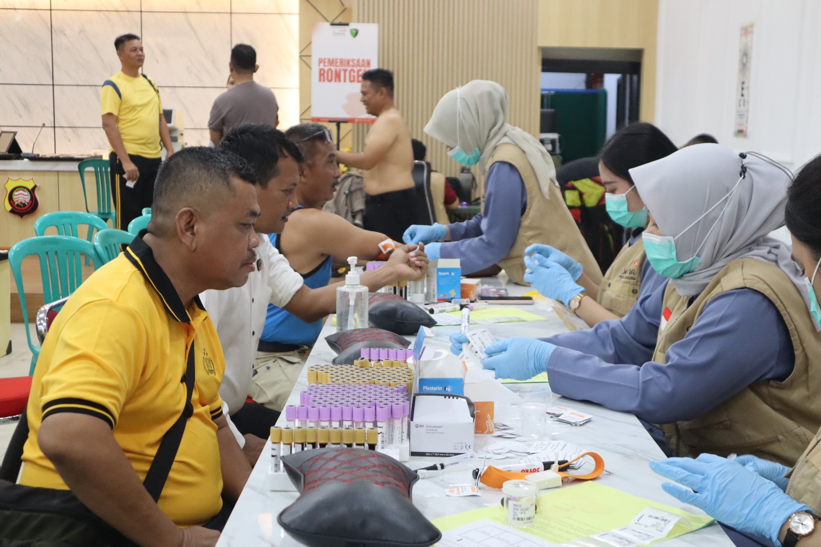 Kegiatan pemeriksaan kesehatan berkala ini diikuti oleh seluruh personel Polres Ketapang dari berbagai satuan fungsi. Pemeriksaan dilakukan secara menyeluruh oleh tim medis yang telah ditunjuk, meliputi pengecekan tekanan darah, pemeriksaan gula darah, kolesterol, asam urat, pemeriksaan fisik umum, hingga konsultasi kesehatan.
