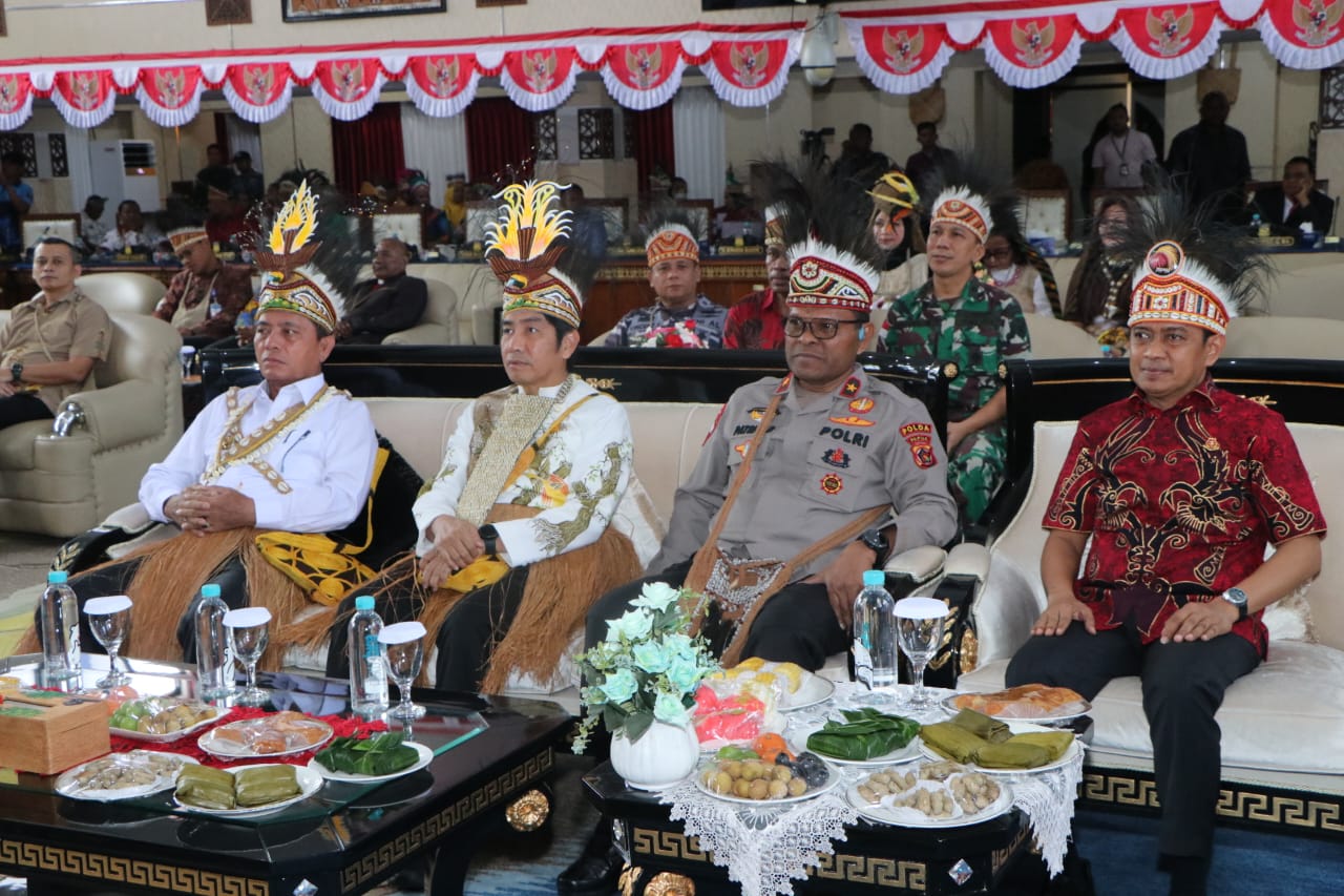 Jayapura – Wakapolda Papua Brigjen Pol Petrus Patrige Rudolf Renwarin, S.H., M.Si., melaksanakan kegiatan Rapat Paripurna Dewan Perwakilan Rakyat Papua dan Mendengarkan Pidato Kenegaraan Presiden Republik Indonesia dalam Rangka HUT Ke – 79 Kemerdekaan Negara Kesatuan Republik Indonesia Tahun 2024, Jumat (16/08).