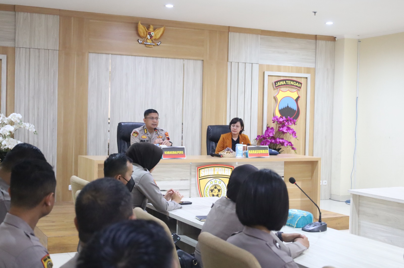 Karo SDM Polda Jateng Kombes. Pol. DR. Noviana Tursanurohmad, S.I.K., M.Si. menegaskan bahwa forum ini merupakan bagian strategis dari upaya peningkatan kompetensi personel Polri dalam menghadapi kompleksitas dinamika tugas, khususnya di bidang komunikasi publik. Ia menyampaikan bahwa kemampuan bercerita secara empatik dan pemanfaatan teknologi informasi bukan lagi sekadar pelengkap, melainkan sudah menjadi kebutuhan strategis dalam membangun kedekatan dengan masyarakat.
