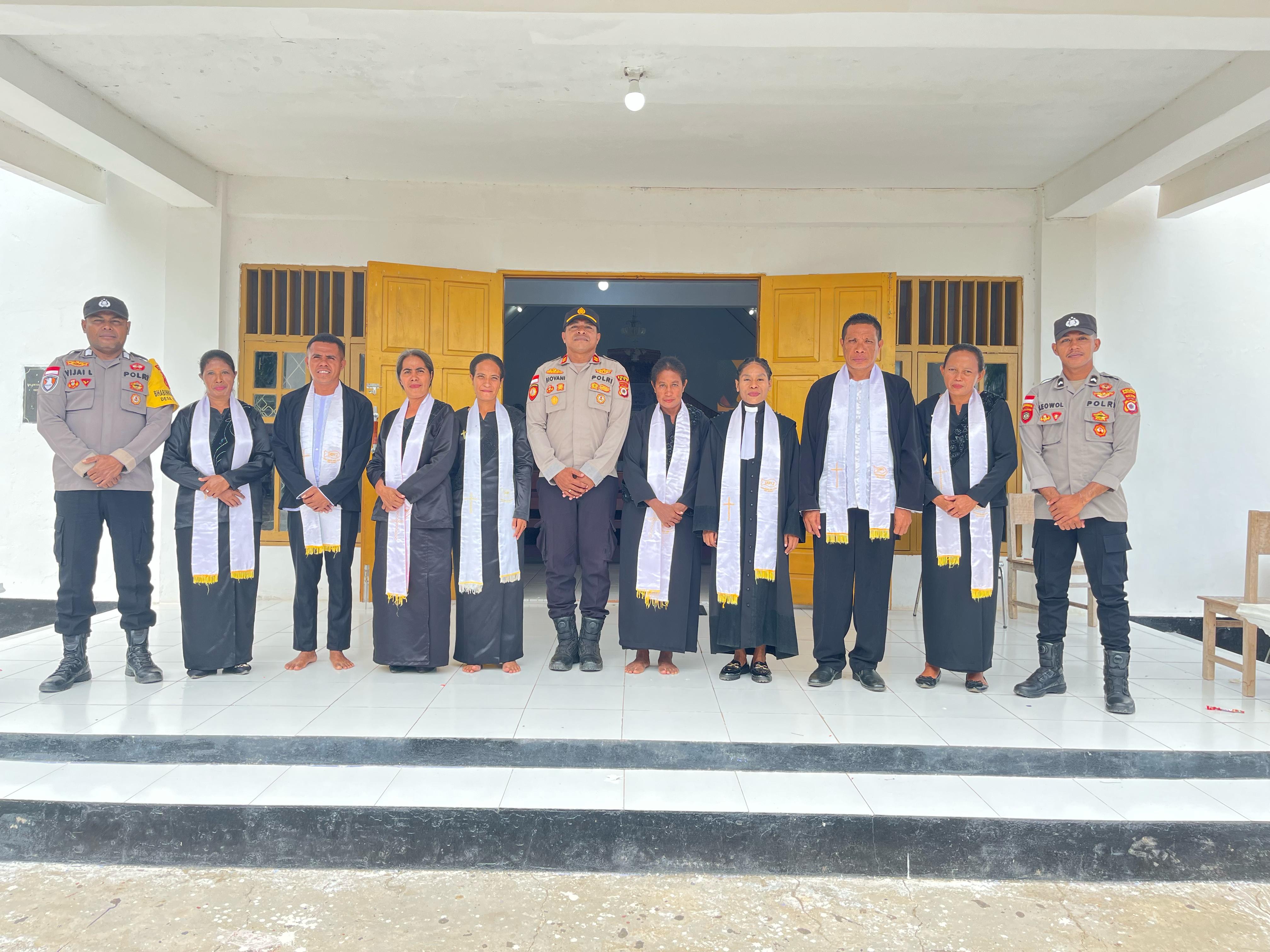 Pelaksanaan Safari Kamtibmas melalui Program Minggu Kasih oleh Kapolsek Wetar Iptu Giovani BM Toffy, S.H, M.H dengan didampingi Bripda Prejelino Leuwol mendatangi tempat ibadah Gereja Rehoboth serta bersilaturahmi dengan warga jemaat GPM Ilwaki Kecamatan Wetar Selatan Kabupaten Maluku Barat Daya pada Minggu pagi (27/04/2025).
