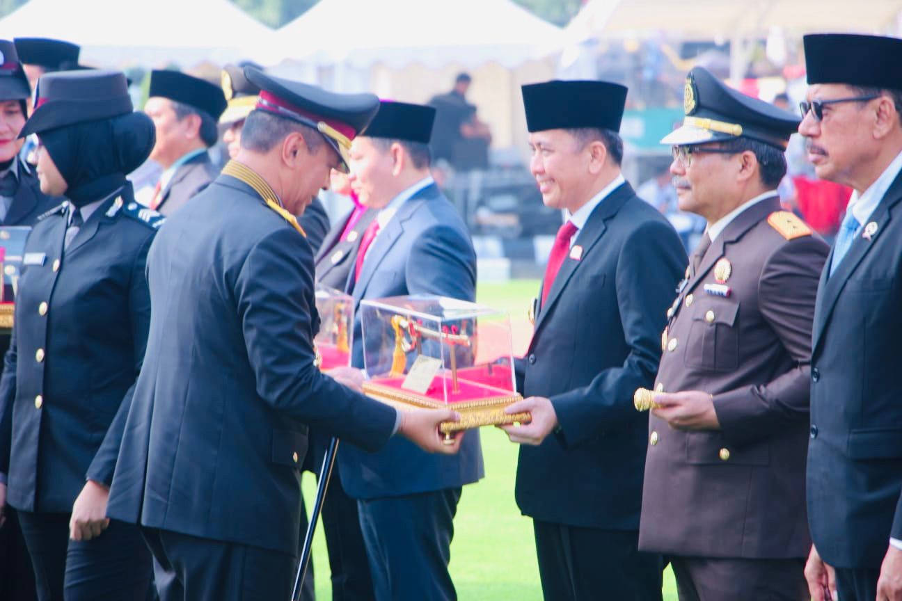 Pada upacara yang berlangsung penuh hikmat tersebut, Kapolda Sumsel Irjen A Rachmad Wibowo yang menjadi inspektur upacara menyerahkan penghargaan Kapolri kepada 14 tokoh Daerah Sumsel stake holder yang telah membantu dan berkontribusi terhadap pelaksanaan tugas kepolisian.
