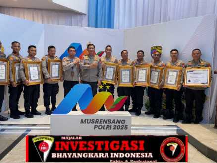 Penyerahan penghargaan yang diberikan langsung oleh Menteri PANRB Rini Widyantini didampingi Kapolri Jenderal Polisi Drs. Listyo Sigit Prabowo, kepada para Kapolda, termasuk Kapolda Kalteng dalam acara Musrenbang Polri tahun 2025, di Gedung Mutiara PTIK, Mabes Polri, Jakarta, Kamis (19/6/2025).