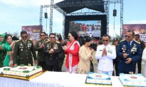 MANADO, investigasibhayangkara.com – Kapolda Sulawesi Utara Irjen Pol Roycke Harry Langie bersama Wakapolda Brigjen Pol Bahagia Dachi dan sejumlah PJU Polda serta Ketua Bhayangkari Sulut hadir dalam upacara peringatan Hari Ulang Tahun ke-79 Tentara Nasional Indonesia (TNI) yang digelar di Kawasan Pohon Kasih Megamas, Manado, Sabtu (5/10/2024).