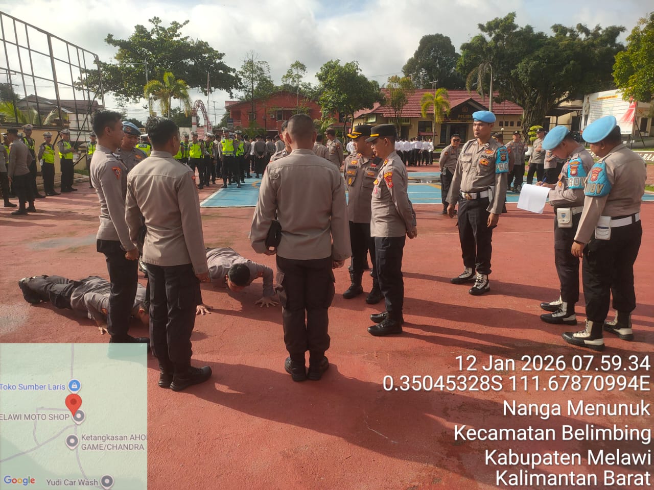 Polres Melawi Polda Kalbar – Waka Polres Melawi, Kompol Aang Permana S.I.P., S.H., M.A.P., melaksanakan kegiatan penegakan dan pemeriksaan disiplin terhadap seluruh personel Polres Melawi, Senin (12/1/2026).