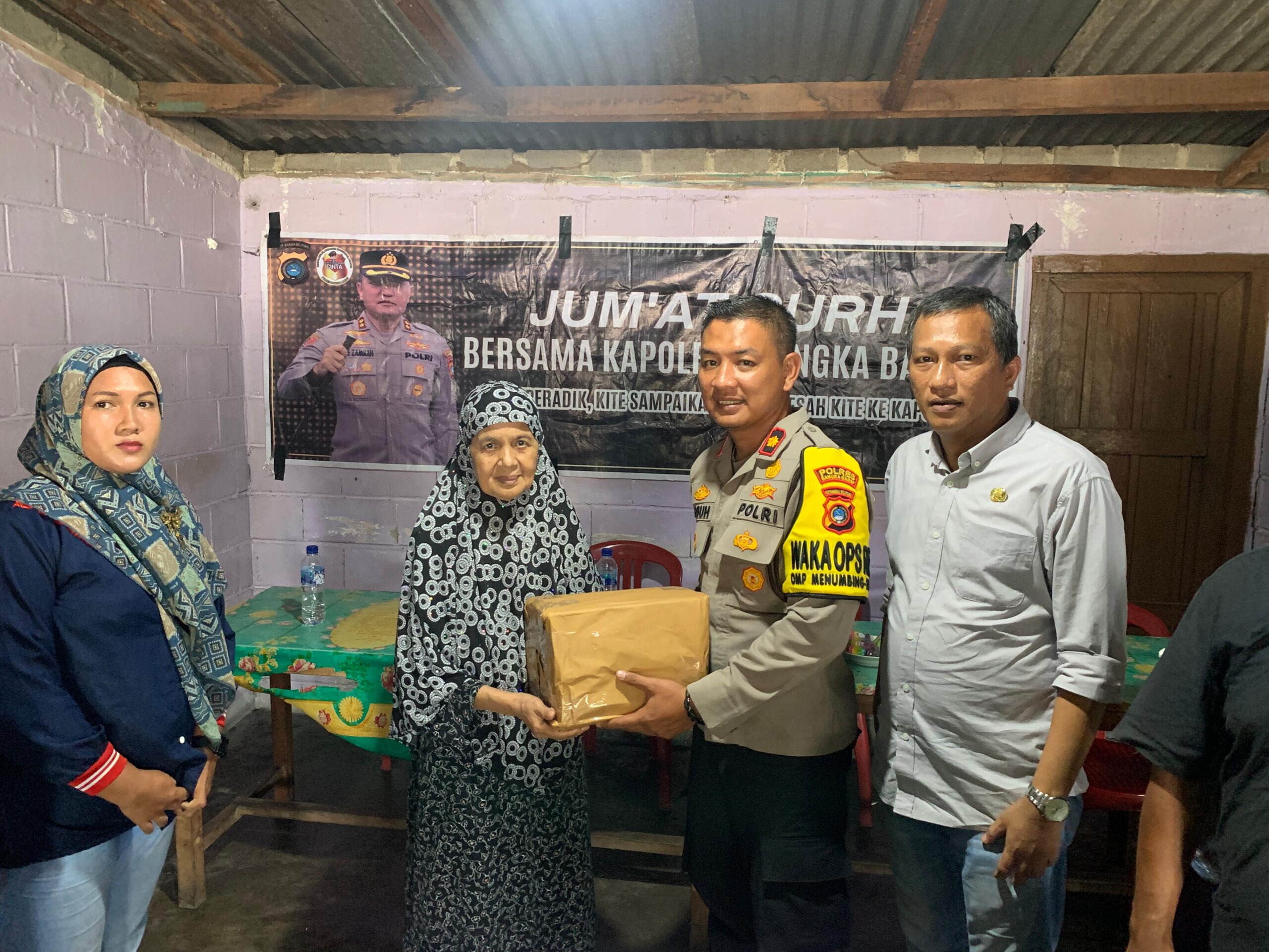 Bantuan tersebut diberikan langsung oleh Wakapolres usai menggelar kegiatan Jumat Curhat bersama seluruh elemen masyarakat, bertempat Warkop Inal Muntok, Jumat (15/11/2024).
