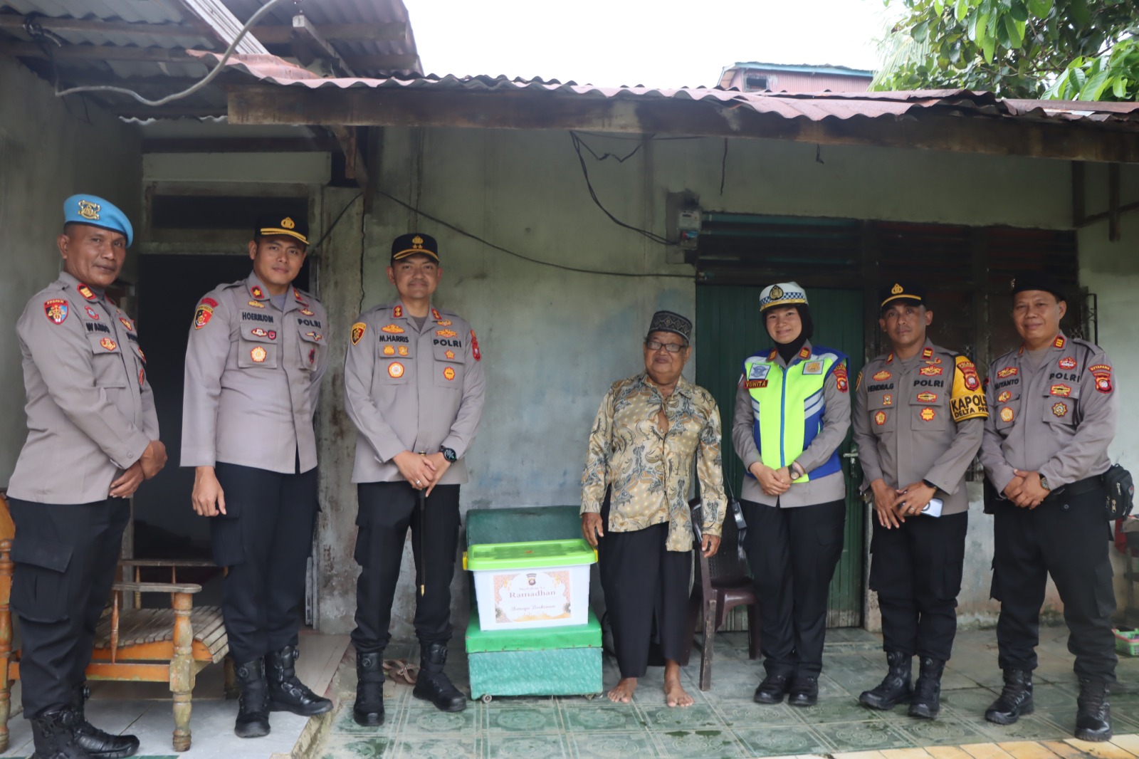 KETAPANG, Polda Kalbar – Kapolres Ketapang AKBP Muhammad Harris, S.H., S.I.K.,M.I.K.,CPHR bersama Waka Polres Ketapang Kompol Hoerrudin., S.I.K.,M.H dan anggota lainnya menyelenggarakan kegiatan bakti sosial berupa pembagian paket sembako kepada warga masyarakat di Kelurahan Mulia baru Kec delta Pawan pada Senin sore , 09 Maret 2026.